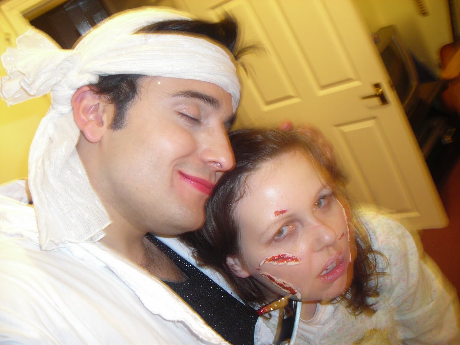 Mario went as (deep breath) A drag queen who had been killed by another drag queen while getting ready for a show... easier to make sense of in this photo